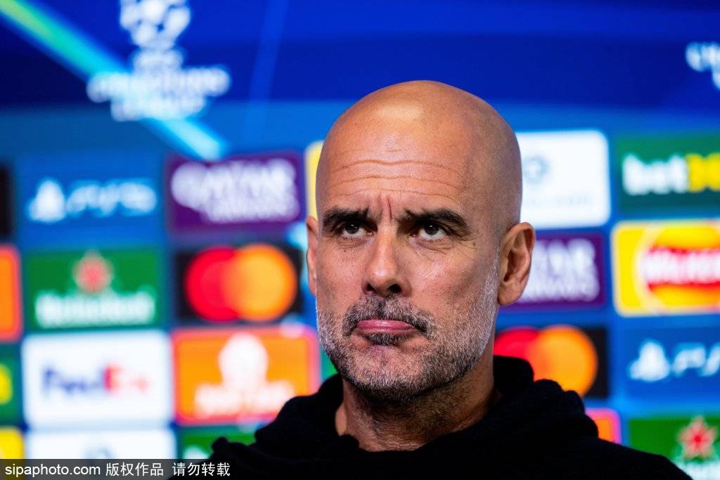 英超球队曼城主教练瓜迪奥拉出席欧冠赛前发布会